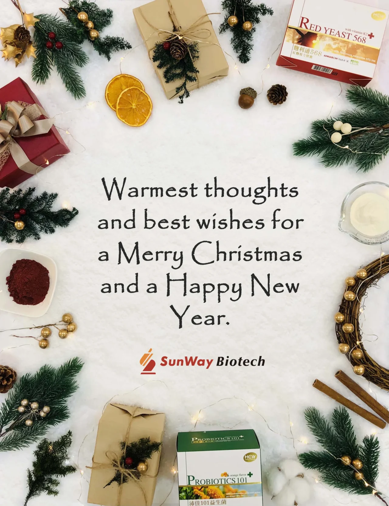 Warmest thoughts and best wishes for a wonderful Christmas and a Happy New Year.Wishing you a Happy Holiday season from your friends at SunWay Biotech.
